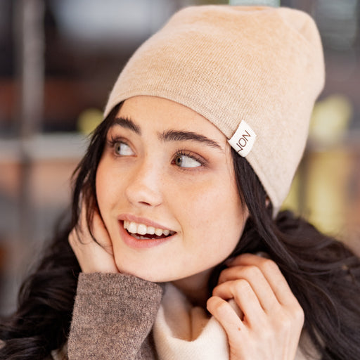 SALEKIRA-reverse Kaschmir Mütze "cognac/cappucino" ORGANIC